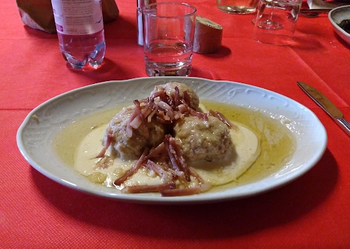 Foto dell'autore mavi80 candidata al contest fotografico formaggio su Dizy. Data inserimento: domenica 28 settembre 2025. Titolo: Canederli con speck e formaggio