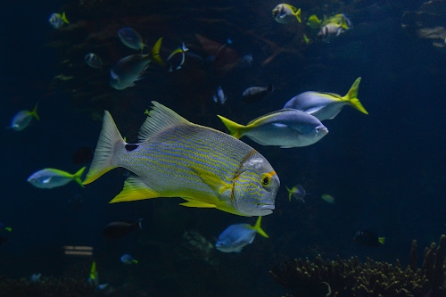 Pesci: pesce dentice giallo e blu - parco oceanografico - Valencia